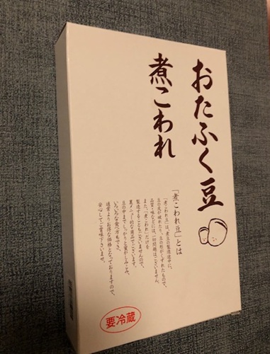 「おたふく豆」のこわれ豆。 おたふく豆は、ソラマメを甘く煮たものである。 それの煮崩れた豆を詰め合わせたもの。