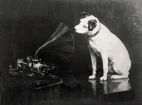 - レーベルのマークでもっとも有名なものは犬のマーク、ニッパー君で、なんと1900年頃だという。