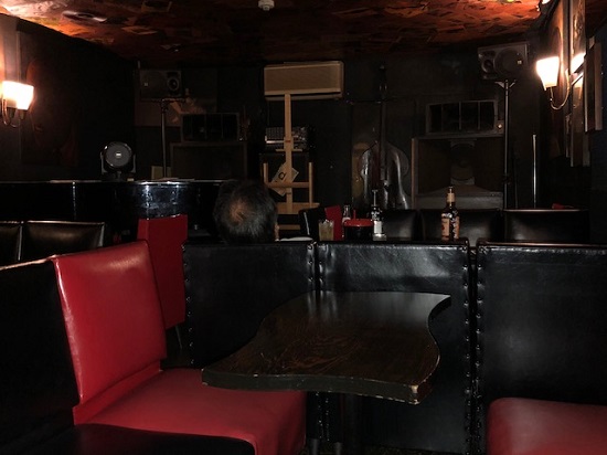 さっそくDOWN BEAT(ダウン ビート)に行く。 いかにもジャズ喫茶らしい、いかついというか古びた階段を上がりドアを開けると、歴史を感じさせる店内だわ。 タバコの煙が染まった天井の色が素敵。 ここは相当 気合の入った店だったことが伺える。