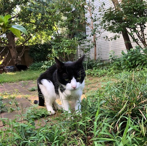 年齢のせいか、最近は遠くへ逃げることもなくなり敷地内で散歩するか、植木用の水を飲むかくらい出来なくなった。 しかし、胸やけが起こるらしく、時々、庭の草を食べている。
