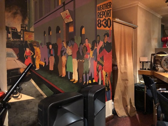 駅の近くのJORNAの4階。 ノイズというからフリージャズやノイズが掛かっているいるのかと思ったが、普通のジャズが普通に掛かっていた。 3時頃だったが、客入りもよく、みなさんランチを召し上がっておられた。 私は食事がすんできたのでコーヒーとケーキを注文。 店内の写真を撮ってよいかと聞くと、笑顔でどうぞだって。 Weather Reportのジャケ写を壁画にしてあって感心。 BGMがジャズというには珍しく、明るくおおらかな感じの店である。 嬉しくなって帰ってきた。