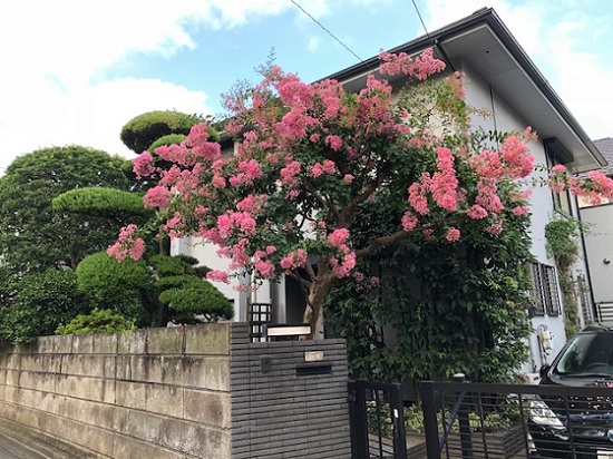 季節外れの思わぬ台風の雨と風でちょっと枝が折れたりもしたが、なんとか咲いた。 我が家のサルスベリは枝垂れるのが珍しい。 近所の人からも、「咲きましたね」と声を掛けられる。 家族からも、人様からも褒められることが何一つない私であるが、これだけは、なんだか嬉しい。