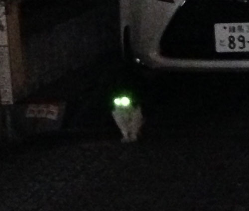 可愛いと思い写真を撮った所、エライ勢いで、猫の目が反射して光った。