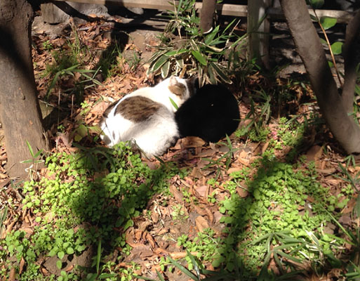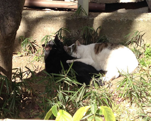 そのかわりに最近仲良しの2匹は今日も仲良さそうに寝ていた。 野良猫だがきっと兄弟かなにかのだろう。 道路の横でくっ付いて寝ている猫を見ながら通勤の人たちが笑っている。 中には、あれっ?などと言いながらブログ用の写真でも撮っている。 微笑ましいひと時である。