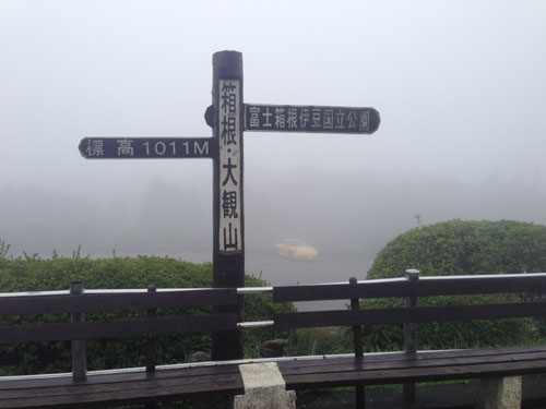 途中降ったり止んだりの激しい天気。 東名高速道路、小田原-厚木道路を比較的順調に過ぎ、いよいよ大好きな箱根ターンパイク。 入口の料金所のオジサンから、今日は上の方が荒れているようで見通しが悪いので気を付けて下さいと、念を押される。 ハイハイと軽く聞き流したものの、砂利や落ち葉が広がっていたり、雨が流れている路面は流石に飛ばすわけには行かない。 オジサンの言う通り、山の上に行くほどに、霧が深くなっていて路肩も良く見えない。 来るんじゃなかったとちょっと反省しつつ、走って山頂の大観山に到着。 いつもはバイクの凄そうなヤツや、走り屋がいたり、観光客がいたりするのだが、確かに今朝は私一人。 淋しいじゃん。