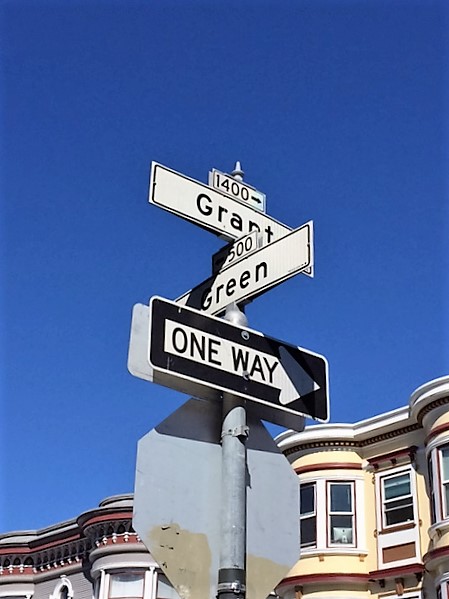 この目で確かめて参った。 サンフランシスコの街角にしっかりと立っていた。 Grantストリートと、Greenストリートの標識が立っていた。 おじさん感動。 案内して下さった友人と一緒に抱き合って喜んだ。