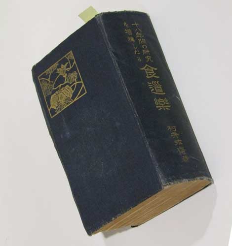 友人の話によると、昭和40年頃、赤坂の一ツ木通りにあった古本屋で見つけた。 その店は老婦がやっていたのだが、この本を見つけ買いたいと告げると、ニコッと笑ってこれは高いよと言われたとの事、裏表紙をめくると鉛筆で当時の価格がそのまま残っていて、5,000円となっている。 給料が1万5千円だか2万円だったかの頃で貧乏だったが、ちょうど料理人に弟子入りした時だったので、勉強しなければいけないと、どうしても欲しくて、エイヤッと買った。 それは今になっても忘れないと話していた。