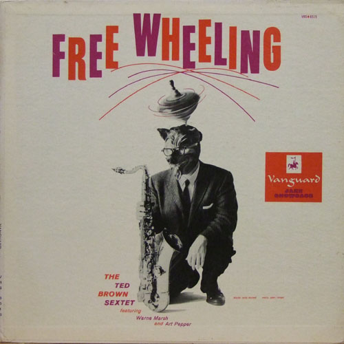 このジャケット、見ればちょっと可笑しい写真である。テッド・ブラウン本人であろうか、なんとオオカミのマスクを被っていて、頭の上にはコマが廻っている。 そして、その上には「FREE WHEELING」と書かれたタイトル。 まさに自由奔放を言いたかったのであろう。観衆に向かって「子豚君達、今日は楽しんだかい?明日はもっと楽しいよ!」と言って食べてしまうつもりであろうか? しかし、写真のオオカミ男は上品なストライプのスーツを着て、きちんとネクタイを締めて片手にテナー・サックスを持っている。 頭は自由奔放でもファションは外していないところが素敵である。