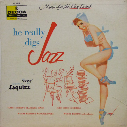 今回入荷のアルバムは “He really digs Jazz” Dcca 8313. ブルーのビキニのお姉さんが恥ずかしそうにポーズを取ったPetty Girlで、Esquireの雑誌の中のイラストで載っていた女の子の絵である、