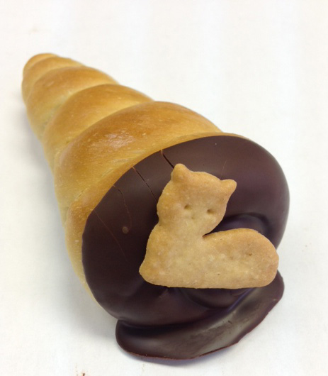 その、食べたものは「猫パン」 たまに食べたくなって買いに行く、 可愛いでしょ。 可哀想で食べられないけど、えい! 一口でパクッ!