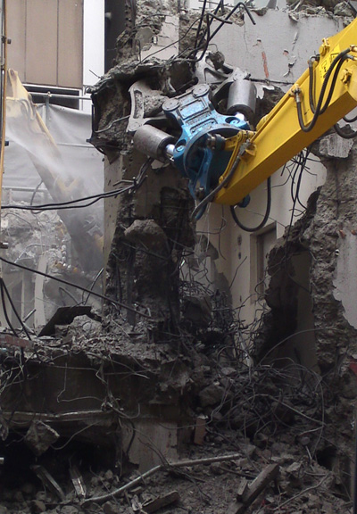 大変な迫力である。 バルタン星人の爪のような、強力な鋼鉄の鋏で砕いて行く姿は圧巻であった。 通行人が立ち止まってしばし眺める。 私も眺めていると、どこかのオジサンも感心しながらカメラを向けていた。 私も負けじと写真を撮る、といってもケイタイであるのがちょっと残念ではある。