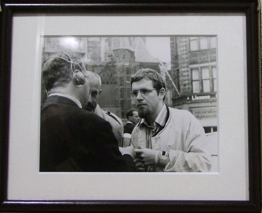写真は、フリージャズの「ウイレム・ブロイカー」 ICPで活躍して名を上げた。 写真はマスコミのインタビューを受けている所。 大変真面目で、なかなかの良い顔立ちである サイズ 横22cm X 縦 17cm (額は33X26) ¥10,000.-