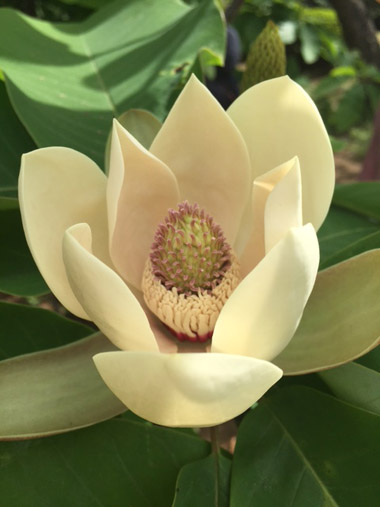 しばらく歩くと「朴ノ木(ほうのき)」があった。 所が良く見たり臭いをかいだりしていると、なんとなく違うような気がしてきて、これは違うのではないかと思っていると、近くにいた人が、「本当は違いますよ」と教えてくれた。 以前はここの立札に「オオヤマレンゲ」と書かれていたと。 それが最近は「ホウノキの仲間」と書くようになったというであった。 分かりにくいから、これで良いじゃないかと、公園側も考えたのだろう。 仲間と入れた所がミソである。 正真正銘の朴ノ木は違う場所に一本あると言われて、注意していたのだが、見つけられなかった。