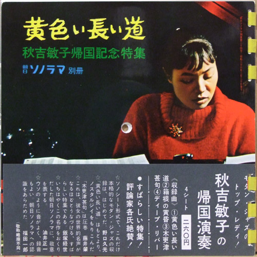 そんな時に、ソノシートで秋吉敏子の「黄色い長い道」なんかが売り出されていたのだな。 この一行で終わりか、今日は。