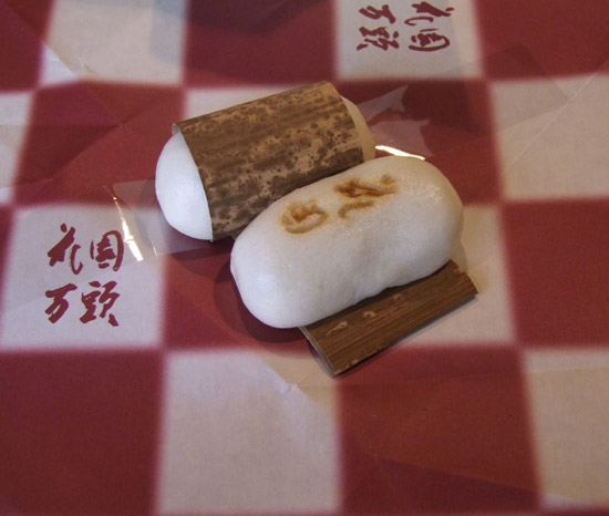 ここのキャッチコピーがすごい。 「日本一高い、日本一うまい」という乱暴な言い方に、温厚なオジサンも唖然。 さっそく店内に入って、日本一高い花園万頭を4つだけ注文。 すかさず若い店員さん、御待ちの間お茶でもどうぞと、お茶ときんつば一かけが乗った、お盆を持って来てくれる。 たった4つばかりの買い物に申し訳ない。 和菓子屋さんはこれが良い。 だから、私など悪いと思うから、本当は一つでいいんだけれども、つい見栄張って、「よ、よ、四っつ!」などとなってしまう。 でも、デパートだとこうは行かないやね。 お茶を飲んだ頃、包装もでき上がりお会計。 デパートもいいけれど、ぜひ本店で。
