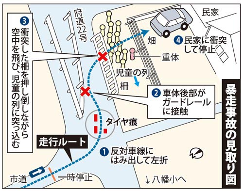 - 2・3日前、京都で登校中の児童の列に車が飛び込んで重症者が出た事件をやっていた。