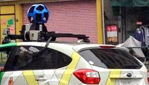 屋根にプラネタリュウムのような球体を載せていて、ちょっと異様な車であるが、車体の横にストリート・ビューと書かれているので、ああ、これかと理解した。