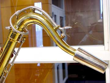 彼のサックスはDolnet(ドルネ)というフランスの小メーカーから供給を受けた。 彼のサックスは特注でネックのオクターブ・キーは蛇の形と彫刻が施された見事な工作である。 ところがこのオクターブ・キーと言うのは僅かでも重量がかさんだり、動きに問題があれば、とても使いものにならないはずであるが、彼のオクターブ・キーはある程度の重量があるにもかかわらず、神経質な動きにも反応したと思われる非常に精巧な作りである。という事でこんなつくりのサックスなど普通はない。 このドルネという会社もドン・バイアスに相当惚れ込んだ結果の、供給ではなかろうかと私は考えるのである。 勿論マウスピースにも凝った扱いをしていたようだ。 男たる者、人に悟られないように気を使いながら、それを、さもだらしなく見せる。 現代人も見習いたい。 男だね〜!