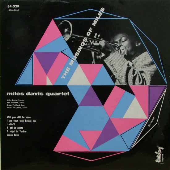 このジャケット、ダイヤモンドのカッティングというか、プリズムの光というか、万華鏡の中を覗くと、右上にマイルスがいたぞ!という物語の運び。 光の遊びの様子が、実に近代的な感じである。近代的というのは当時の近代的なジャケット・デザインで、当時のジャズがいかに前衛であったかという証拠かもしれない。 今になって見ている内に、近代的というのが余計に素敵に見える。 そういえば、当時の欧州の近代美術は大体好きだな。