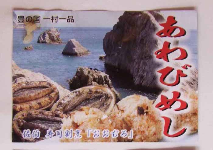 そこの九州物産で見つけた、「あわびのおにぎり」。 これが、結構美味しい。 アワビの他、ウニ、サザエとある。2個で500円だがアワビだけは880円でちょっと高級感がある。因みに全種類3個順番に食べたが、味がしっかりしているせいか、まぎれてしまって最後のアワビの味があまり伝わって来なかったような感じがしないわけでもない。はっきりは書かないのがいい所。 大分県の佐伯市から来た「おおむろ」というお店。チラシの写真撮ったのをみたらご飯粒が付いていたようだ。イカン。 しかし、あっちには豊後水道がひかえているから、食べ物が美味しいのだろう、きっと。